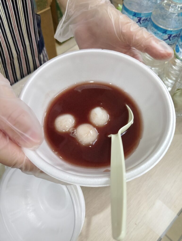 10月4日(土)は途中から大雨となり、お客様が少ない時間帯もありましたが、お汁粉は大好評で、80杯を完売。5日(日)もお昼過ぎには完売となり、90杯をご提供しました。
