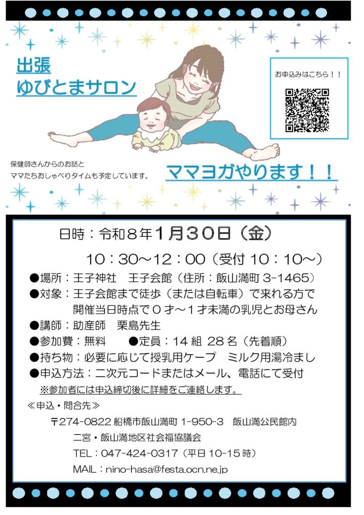 1/30(金)飯山満3丁目の王子神社内王子会館にてゆびとまサロンを開催します。