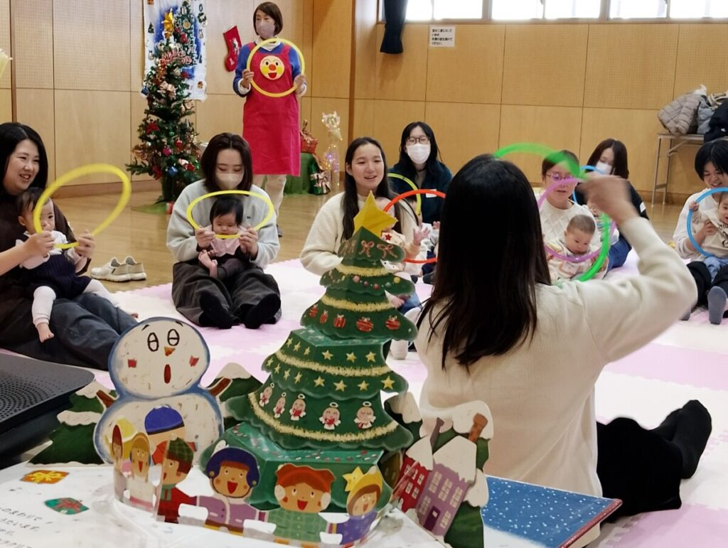 湊町地区社会福祉協議会の子育てサロン「0歳児親子のためのすくすく広場」と「1歳児親子のためのどんぐり広場」で、それぞれクリスマス会を開催しました。