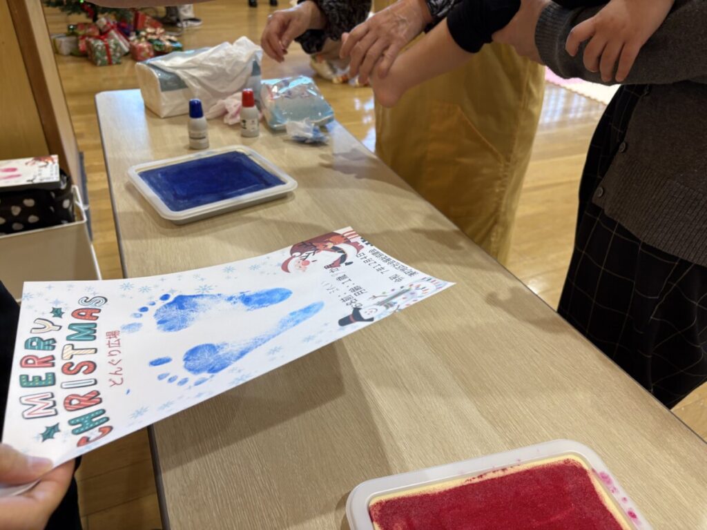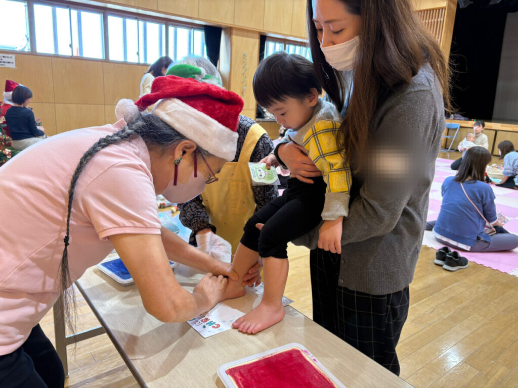また、今回の特別企画として足形アート制作も実施。小さな足を使って、世界に一つだけのクリスマス作品を作りました。お子さんの成長の記録として、ママにも大変喜んでいただけました。