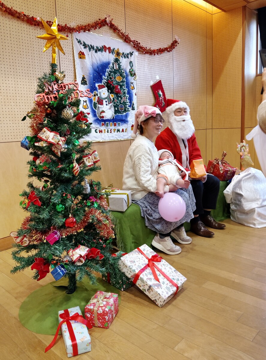 湊町地区社会福祉協議会の子育てサロン「0歳児親子のためのすくすく広場」と「1歳児親子のためのどんぐり広場」で、それぞれクリスマス会を開催しました。