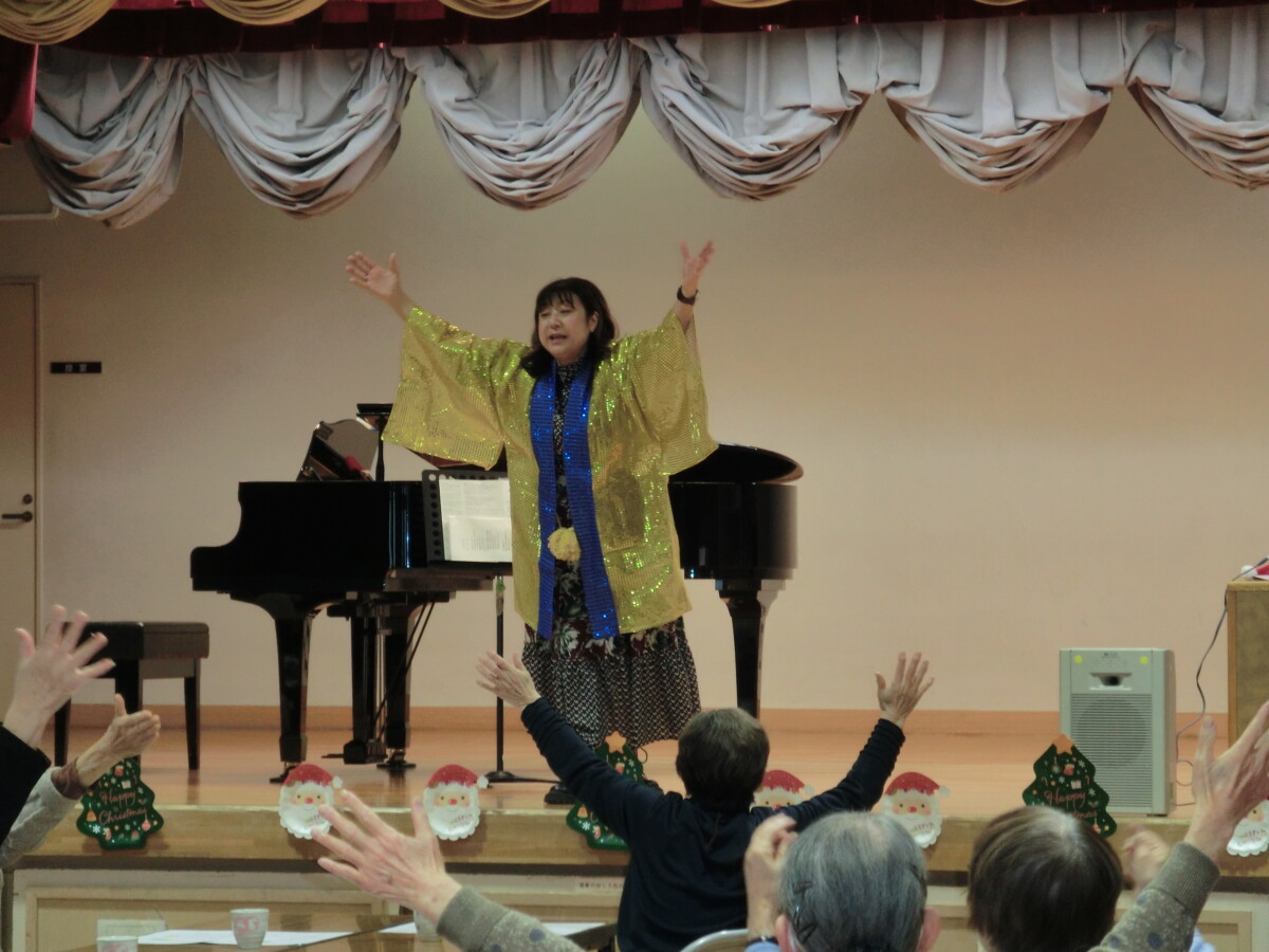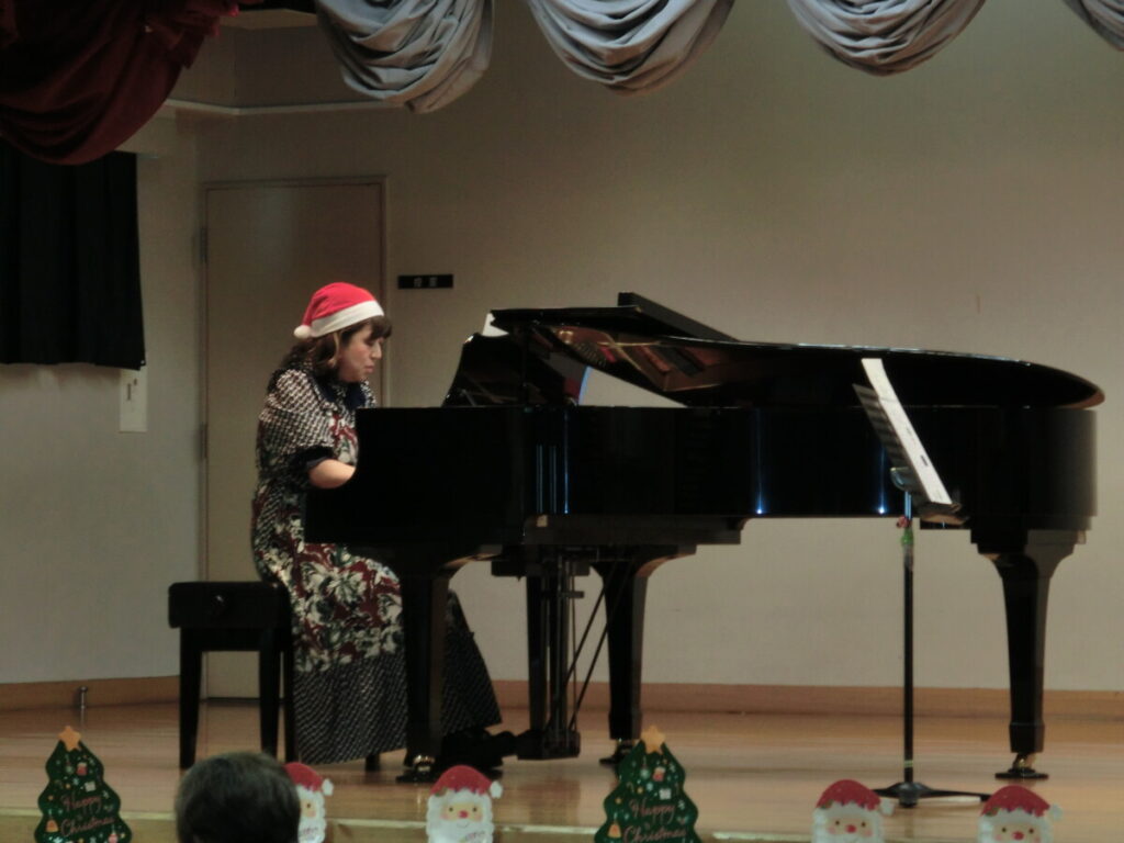 先生の素敵なピアノ演奏を聴いたり、耳馴染みのクリスマスソングを参加者の皆さんと一緒に歌ったりしました。