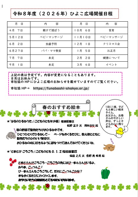 今年度の「ひよこ広場」の様子、来年度の予定、おすすめの絵本の紹介を