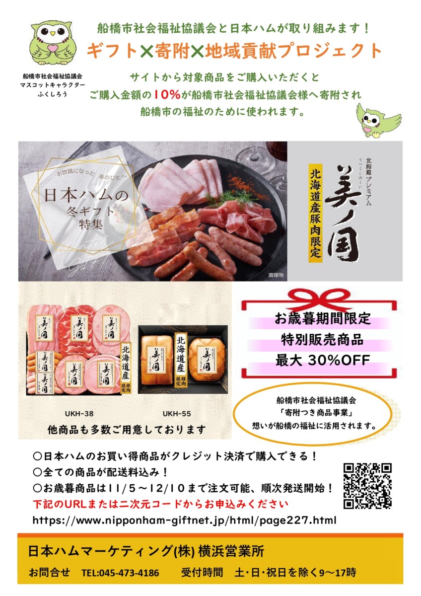 「寄附つき商品事業」は、企業等が”寄附つき商品”を販売し、売上の一部を船橋市社会福祉協議会にご寄附いただくことで、船橋市の地域福祉活動を支えていただく取り組みです。