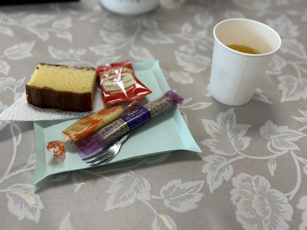 出してくださるお茶菓子はボランティアさんが作ってくださったお皿にのっていて、とてもオシャレです♪