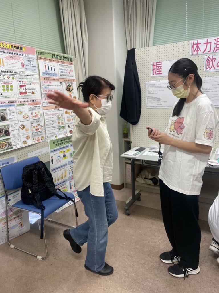 また、東京医療保健大学の学生さんにご協力いただき、体力測定コーナーも設けていました。体力測定では、握力測定、片足立ちなどの測定が出来ました。子どもから大人まで様々な年代の方が、体力測定にチャレンジしていました。