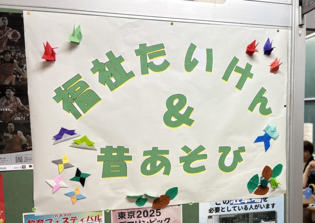 福祉体験では車いす体験や高齢者疑似体験、昔遊びはおはじきやめんこ、けん玉等、滅多に出来ない体験に