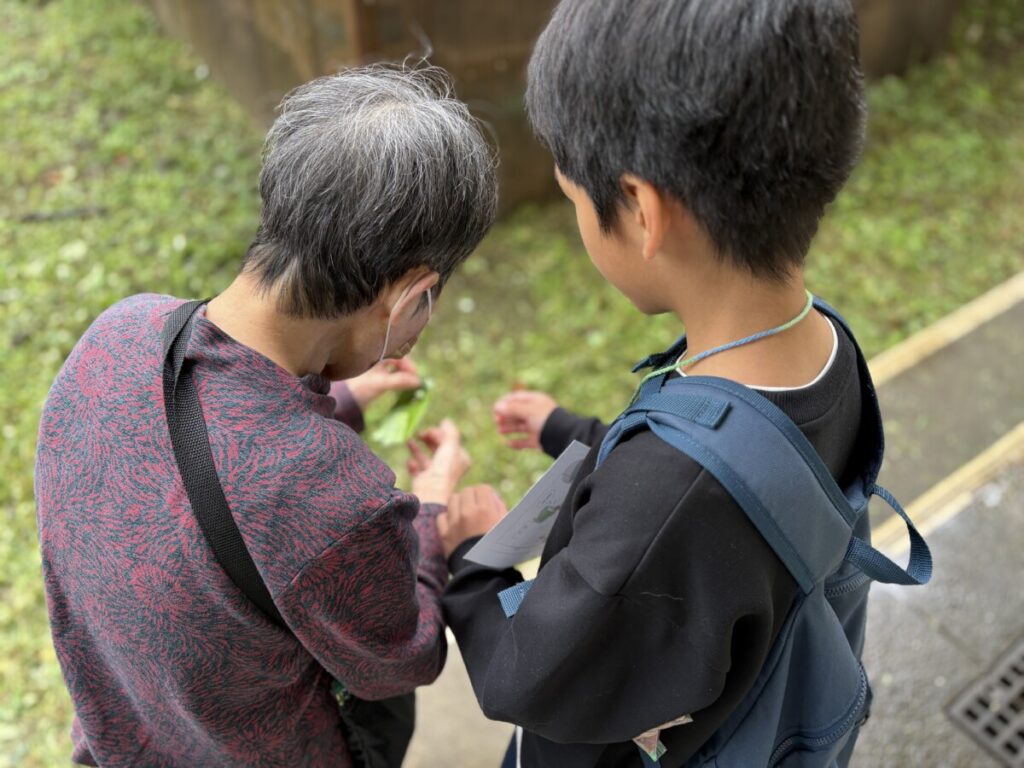 外では笹舟を作る体験を行っており、普段なかなか見る機会も少なくなった笹舟に興味深々でした!