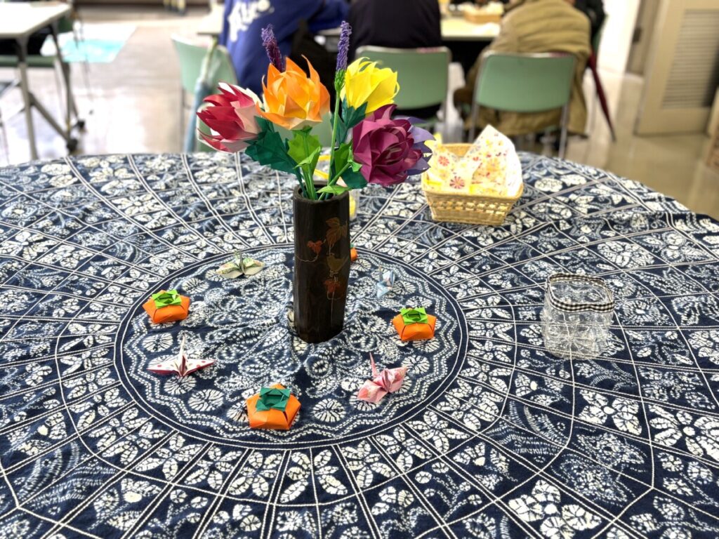 ひと休みできるカフェでは、テーブルに折り紙で作った作品が飾られており、そのクオリティにとても驚きました!!