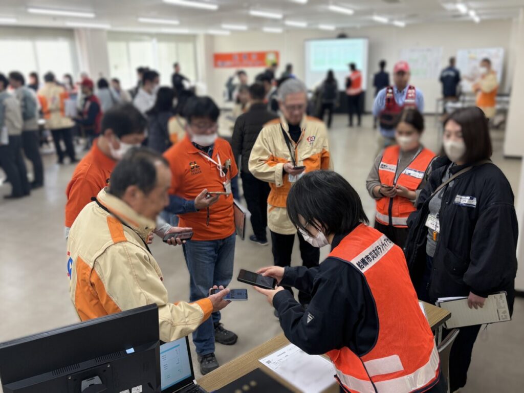 その後、今年度より導入を始めた株式会社コンサイドさんのシステム『Joy links』を活用した実地訓練を行いました。会場が例年より広くなかったこともあり心配しておりましたが、システムを活用するからこそ、時間が短縮される流れなどを再確認する事が出来ました。