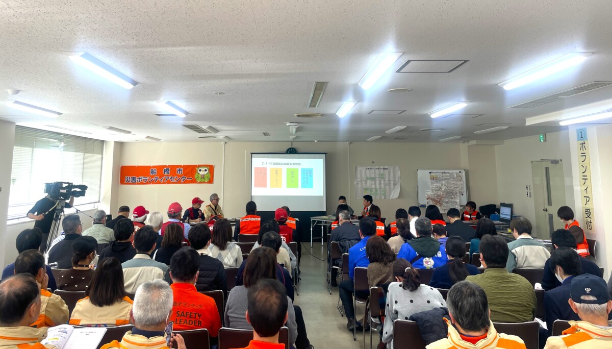 令和8年2月9日、船橋市災害ボランティアセンター立ち上げ訓練を地区社協や災害支援団体、県社協、行政等の協力のもと、開催しました。例年、船橋市総合教育センターで行っている立ち上げ訓練ですが、今年度は施設の改修工事を行っている関係で市役所分室会議室にて平日の開催で行いました。