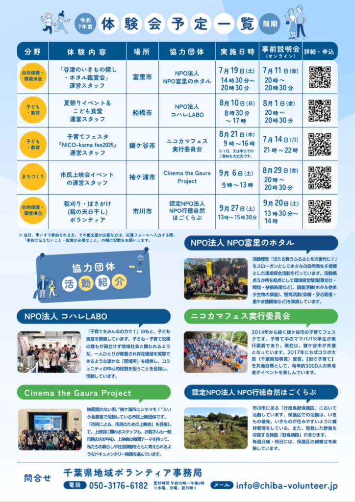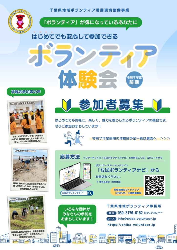 千葉県地域ボランティア事務局より「ボランティア体験会」参加者募集のお知らせです。