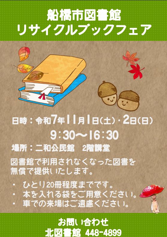〇お問い合わせ先:船橋市北図書館(047-448-4899)