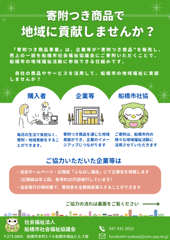 船橋市で暮らす様々な方への地域福祉活動に役立てられます。