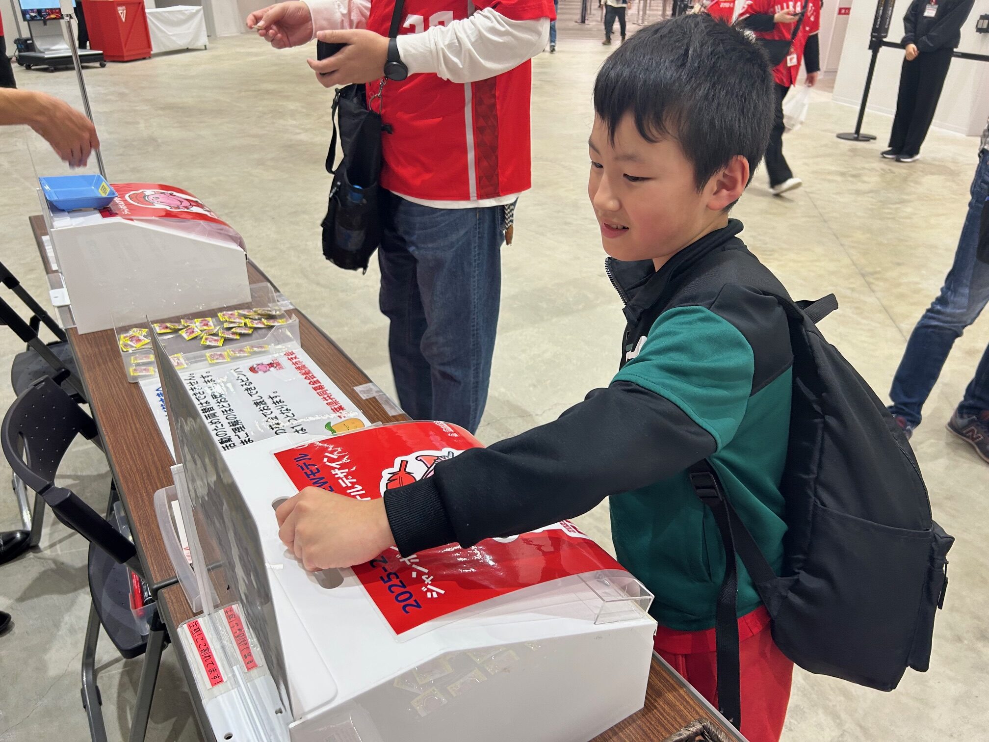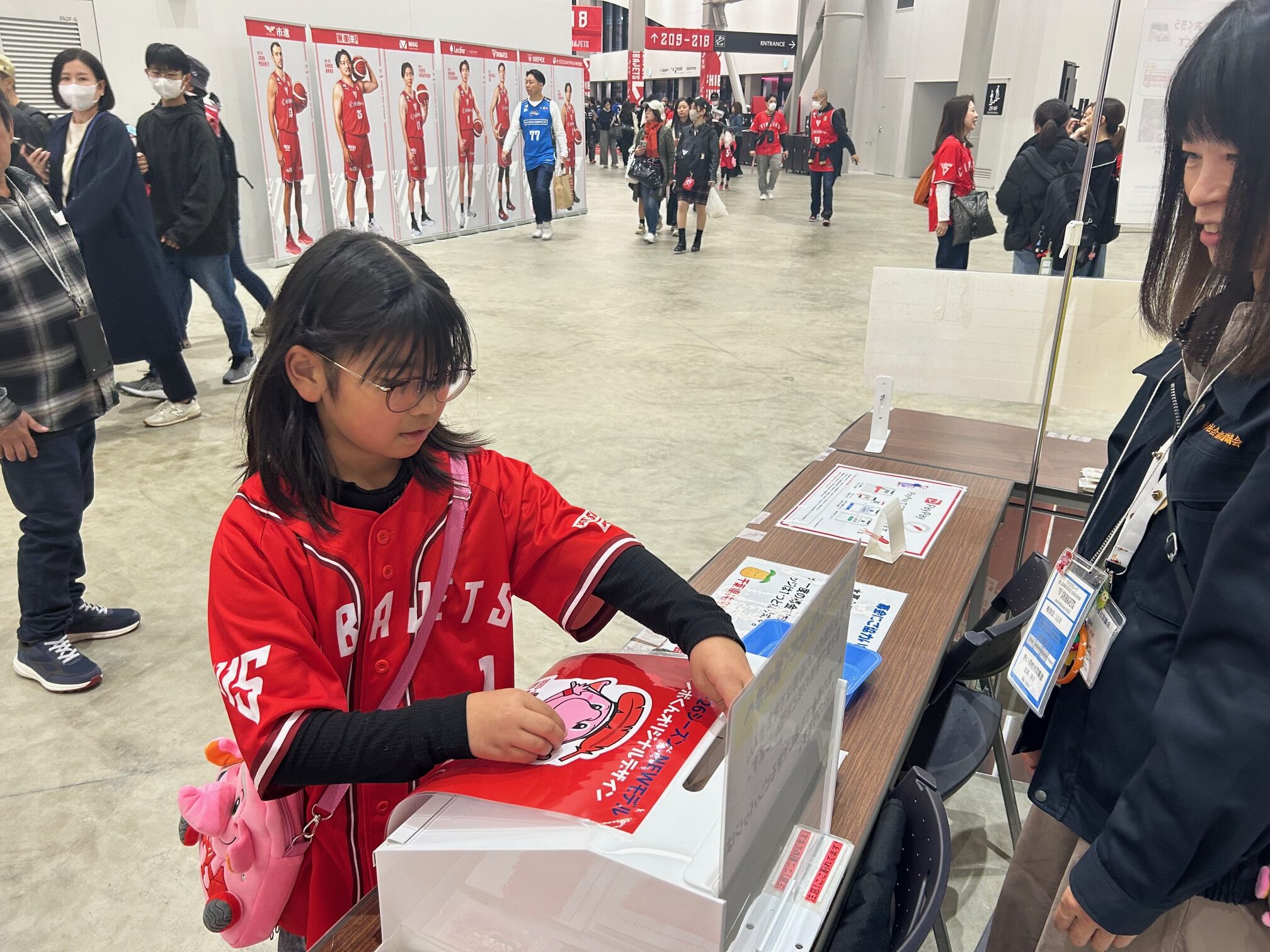 11月8日(土)島根スサノオマジック戦で2025-26シーズンのジャンボくんピンバッジ募金活動を行いました。