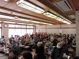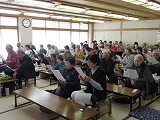 第1部の声出し健康法では、鳥居先生のお話しや歌に合わせ、参加者は楽しそうに声を出し、