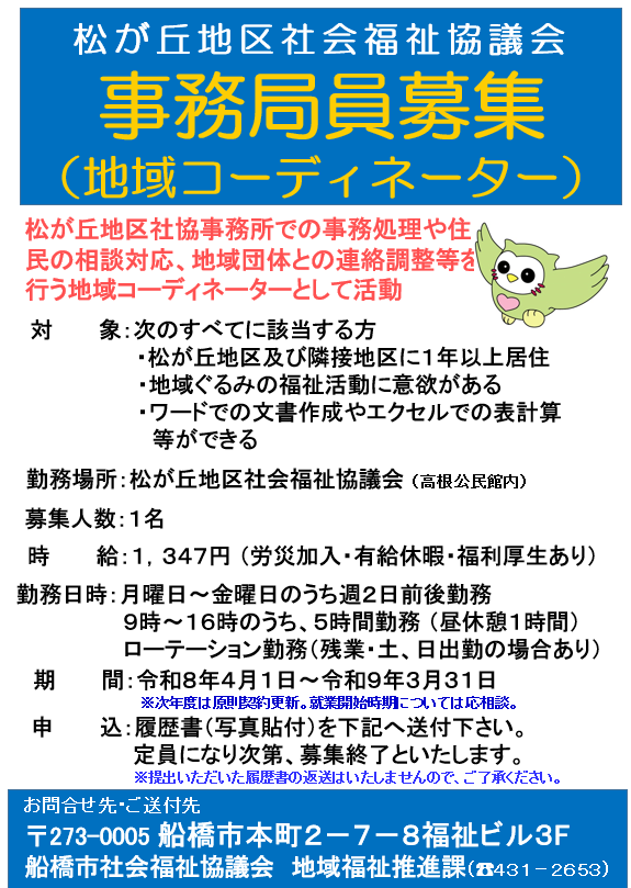 船橋市社会福祉協議会 地域福祉推進課(TEL:431-2653)